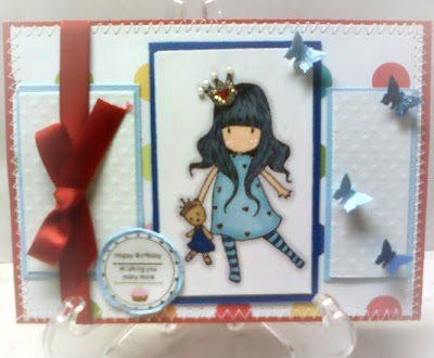 A little about this card, I added crystal effect to her coat and rubber boots, also pop up her boots and umbrella, added stickles to the umbrella. I did my stitching tried to make a card without it and it just doesn't look right. My mother gave me a handful of flowers yesterday used three on this card. I am using this card for several challenges, firs up is Sketch from Stamp with Fun found HERE followed by Creative Card Crew found HERE next up is A Spoon full of Sugar Challenge found HERE followed by PaperPlay Challenges found HERE and last but not least is Sew Many Cards Challenge found HERE.
